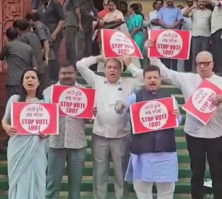 নয়াদিল্লি : সংসদ ভবন চত্বরে নির্বাচন কমিশন ও ‘ভোট লুট’-এর বিরুদ্ধে বিক্ষোভ দেখালেন তৃণমূল কংগ্রেস সাংসদরা। বিহারে ভোটার তালিকায় বিশেষ নিবিড় সংশোধন প্রক্রিয়া কার্যকর করা নিয়ে বর্তমানে জাতীয় রাজনীতি তোলপাড়। ইতিমধ্যে পশ্চিমবঙ্গের বিভিন্ন ডিভিশনে নির্বাচন কমিশনের তরফে বুথ লেভেল অফিসারদের প্রশিক্ষণ দেওয়ার কাজ শুরু হয়ে গিয়েছে। এর মধ্যে মঙ্গলবার সংসদে নির্বাচন কমিশন ও ‘ভোট লুট’-এর […]