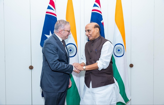 ক্যানবেরা ও নয়াদিল্লি : প্রতিরক্ষা মন্ত্রী রাজনাথ সিং বৃহস্পতিবার অস্ট্রেলিয়ার ক্যানবেরার পার্লামেন্ট ভবনে অস্ট্রেলিয়ার প্রধানমন্ত্রী অ্যান্থনি আলবানিজ এবং উপ-প্রধানমন্ত্রী ও প্রতিরক্ষামন্ত্রী রিচার্ড মার্লেসের সঙ্গে সাক্ষাৎ করেছেন। প্রতিরক্ষা মন্ত্রী রাজনাথ সিংকে স্বাগত ও সম্মান জানাতে অস্ট্রেলিয়ান পার্লামেন্টে সে দেশের এক পরম্পরার আয়োজন করা হয়। প্রতিরক্ষামন্ত্রী রাজনাথ সিং এবং অস্ট্রেলিয়ার উপ-প্রধানমন্ত্রী ও প্রতিরক্ষামন্ত্রী রিচার্ড মার্লেসের উপস্থিতিতে এদিন ভারত […]