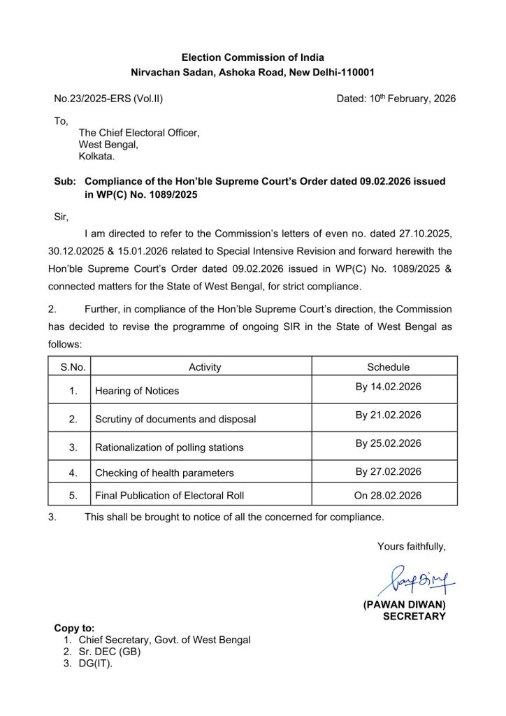 তার আগে, শুনানি শেষ করতে হবে ১৪ ফেব্রুয়ারির মধ্যে। ২১ ফেব্রুয়ারির মধ্যে যাচাই এবং চূড়ান্ত নিষ্পত্তি শেষ করতে হবে।