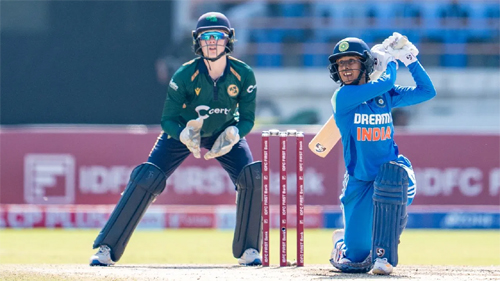 আয়ারল্যান্ডের বিরুদ্ধে দ্বিতীয় ওয়ান ডে-তে টপ অর্ডার ব্যাটারদের দাপট, জেমাইমার কেরিয়ারের প্রথম সেঞ্চুরি। নির্ধারিত ৫০ ওভারে ৫ উইকেটে ৩৭০ রান তোলে ভারত। ৯০ বলে কেরিয়ারের প্রথম ওয়ান ডে সেঞ্চুরি পূরণ জেমাইমার। টস জিতে আয়ারল্যান্ডের বিরুদ্ধে প্রথমে ব্যাটিংয়ের সিদ্ধান্ত নেন স্মৃতি মান্ধানা। প্রতীকা রাওয়ালকে নিয়ে বিধ্বংসী শুরু স্মৃতির। মাত্র ৫৪ বলে ৭৩ রানের বিধ্বংসী খেলেন ক্যাপ্টেন স্মৃতি মান্ধানা।