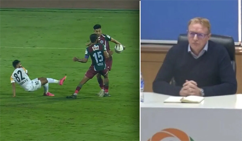 বিতর্ক উস্কে দিলেন ভারতীয় ফুটবল ফেডারেশনের চিফ রেফারিং অফিসার। ইস্টবেঙ্গলের পেনাল্টির দাবি ন্যায্য নয়। গুয়াহাটিতে বড় ম্যাচে প্রথমার্ধের শেষ লগ্নে মোহনবাগানের বক্সে ইস্টবেঙ্গলের বিষ্ণুর শট আপুইয়ার হাতে লাগলেও তা পেনাল্টি নয়। ডার্বির রেফারি ভেঙ্কটশের সিদ্ধান্তকেই শিলমোহর দিলেন চিফ রেফারিং অফিসার ট্রেভর কেটল। ভারতীয় ফুটবলে রেফারিং ইস্যুতে তোলপাড় শুরু হয়েছে। আইএসএলে একাধিক ম্যাচে খারাপ রেফারিংয়ের অভিযোগ উঠেছে। রেফারিং নিয়ে ইস্টবেঙ্গলের পাশাপাশি প্রশ্ন তুলেছে পঞ্জাব এফসিও। যদিও রেফারিদের পাশেই দাঁড়াচ্ছেন ট্রেভর কেটল।