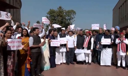 লোকসভার বিরোধী দলনেতা রাহুল গান্ধী, কংগ্রেস সভাপতি মল্লিকার্জুন খাড়গে, সমাজবাদী পার্টির প্রধান অখিলেশ যাদব, কংগ্রেস সাংসদ প্রিয়াঙ্কা গান্ধী বঢরা প্রমুখ সংসদ চত্বরে এই ইস্যুতে বিক্ষোভ প্রদর্শন করেন। বিক্ষোভ দেখানোর সময় কংগ্রেসের সাধারণ সম্পাদক কেসি বেণুগোপাল, সপা সাংসদ ধর্মেন্দ্র যাদব, কংগ্রেস সাংসদ গুরজিত সিং আউজলা এবং আরও কয়েকজন নেতাকে প্রতীকী প্রতিবাদ স্বরূপ হাতকড়া পরতে দেখা যায়।
