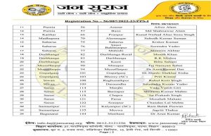 পাটনা : বিহারে বিধানসভা ভোট ঘোষণার পরে প্রশান্ত কিশোরের ( পি কে) ‘জন সুরজ’ই বিহারের প্রথম দল হিসেবে প্রথম দফার প্রার্থী তালিকা ঘোষণা করলো।