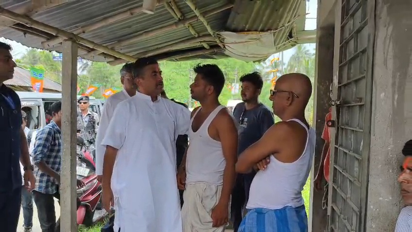 এরপর এলাকায় বাড়ি বাড়ি গিয়ে জনসংযোগ করেন। পাশাপাশি স্থানীয় বিষ্ণু মন্দিরে পুজো দেন শুভেন্দু। দলীয় কর্মী-সমর্থকরা পুষ্পবৃষ্টির মাধ্যমে তাঁকে স্বাগত জানান।