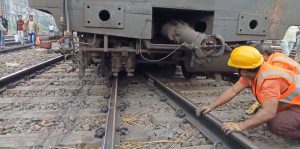 ফের অফিস টাইমে ট্রেন বেলাইন হওয়ার ঘটনা ঘটল হাওড়াতে। যার দরুন সমস্যার মুখে পড়েন যাত্রীরা। বুধবার সকাল ৮ টা ৫৫ মিনিট নাগাদ হাওড়া স্টেশনে ঢোকার টিকিয়াপাড়াতে লাইনচ্যুত হয় ৩৮২০২ ডাউন বাগনান লোকাল। স্টেশনে ঢোকার পূর্বে নিজের ট্র্যাক বদল করার সময়। রেল সূত্রে খবর হাওড়ার টিকিয়াপাড়ার চাঁদমারী ব্রিজের ১০০ মিটার আগে ১২ কোচের লোকাল ট্রেনটি সামনের দিকের চারটি চাকা লাইনচ্যুত হয়ে যায়।  হাওড়া স্টেশনে একেবারে মুখে চাঁদমারি ব্রিজের কাছে লাইনচ্যুত হয় ৩৮২০২ ডাউন বাগনান লোকাল। স্টেশনে ঢোকার পূর্বে নিজের ট্র্যাক বদল করার সময় লাইনচ্যুত ওই ট্রেনের ৫ নম্বর বগি। যদিও টিকিয়াপাড়াতে ট্রেনের গতি কম থাকায় বড় দুর্ঘটনার থেকে রক্ষা পায় যাত্রীরা। দুর্ঘটনার খবর পেয়ে ঘটনাস্থলে ছুটে আসেন রেলের উচ্চ পদস্থ আধিকারিকরা। ট্রেনের লাইনচ্যুত হওয়া কামরার পিছনের বগিগুলোকে অন্যত্র সরিয়ে নিয়ে যাওয়া হয়। বাকি বগিসহ ইঞ্জিন প্ল্যাটফর্মের দিকে সরিয়ে দেওয়া হয়। লাইনচ্যুত কামরাটি সরিয়ে ট্র্যাক মেরামতির কাজ চলছে বলেই জানান হয়েছে রেলের তরফে। যদিও এই ঘটনায় কারোর আহত হওয়ার কোনো খবর নেই বলেই জানিয়েছে রেল। যদিও অফিস টাইমে এই ঘটনার জেরে চূড়ান্ত ভোগান্তিতে পড়েন নিত্য যাত্রীরা। বর্তমানে ১৪ নম্বর প্লাটফর্ম দিয়ে কোনরকম ট্রেন চলাচল করছে না বাকিগুলো দিয়ে স্বাভাবিকভাবেই ট্রেন চলাচল করছে।