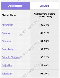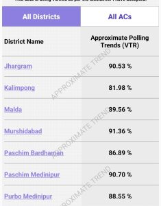 রাজ্যপশ্চিমবঙ্গ বিধানসভা নির্বাচন : সন্ধ্যা ৫টা পর্যন্ত ৮৯.৯৩% ভোটদান, কোন জেলায় কত শতাংশ ভোট পড়েছে, এখানে দেখুন Posted on April 23, 2026 by News Desk 23 Apr News Desk ইডি তলবে হাই কোর্টে সাময়িক স্বস্তি সুজিতের ভোটের শেষে রণক্ষেত্র খয়রাশোল : ইভিএম বিভ্রাট ঘিরে ধুন্ধুমার, ইটবৃষ্টিতে জখম ৬ জওয়ান, পরিস্থিতি সামাল দিতে পিস্তল বের করল পুলিশ
