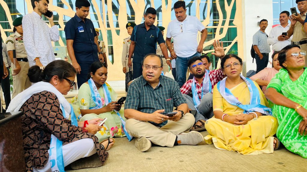 বিমানবন্দরে আসার পর ছয় সদস্যের এই প্রতিনিধি দলকে আগরতলা শহরে প্রবেশ করার জন্য কোন গাড়ি তুলতে চাইছে না৷ শুধু তাই নয় যে প্রিপেইড টেক্সি রয়েছে সেগুলিও বুকিং নিচ্ছে না৷ এই পরিস্থিতিতে সেখান বিক্ষোভ দেখাতে শুরু করেন তৃণমূল কংগ্রেসের বঙ্গের নেতৃত্বরা৷